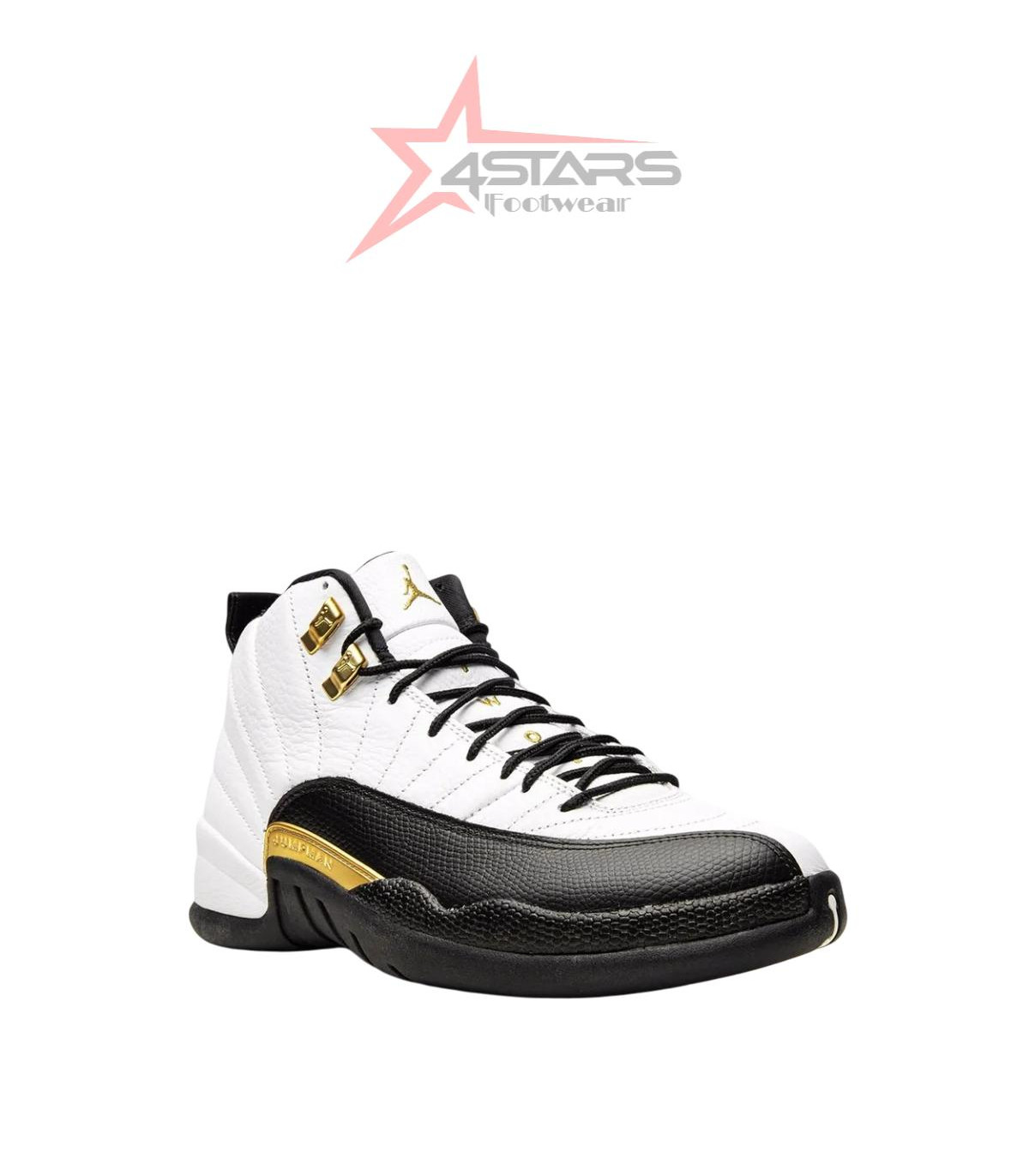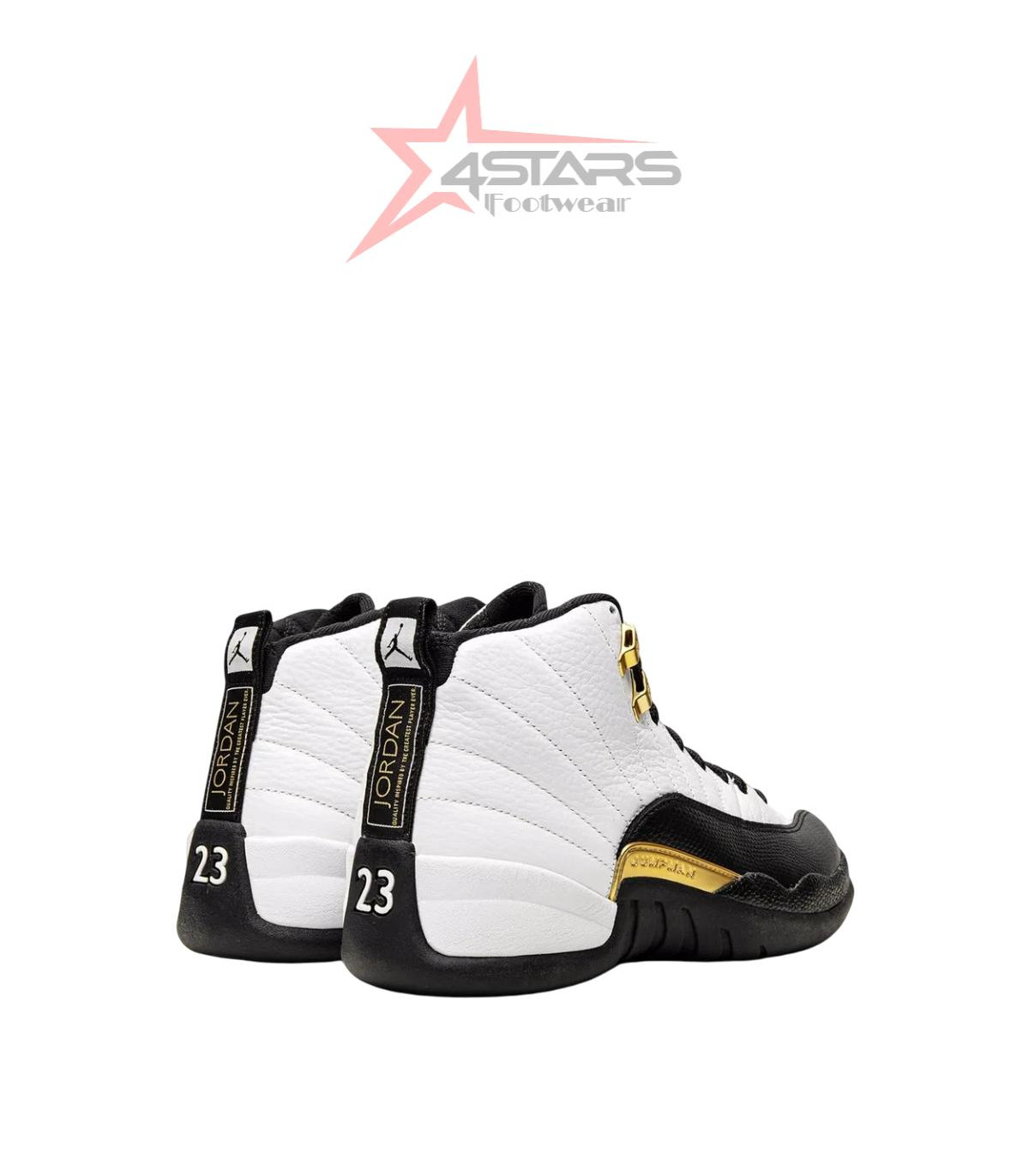 The Air Jordan 12 Retro “Royalty Taxi” updates the iconic 1997 “Taxi” with premium white leather, gold detailing, and a textured mudguard. Finished with a black rubber sole for comfort and style.