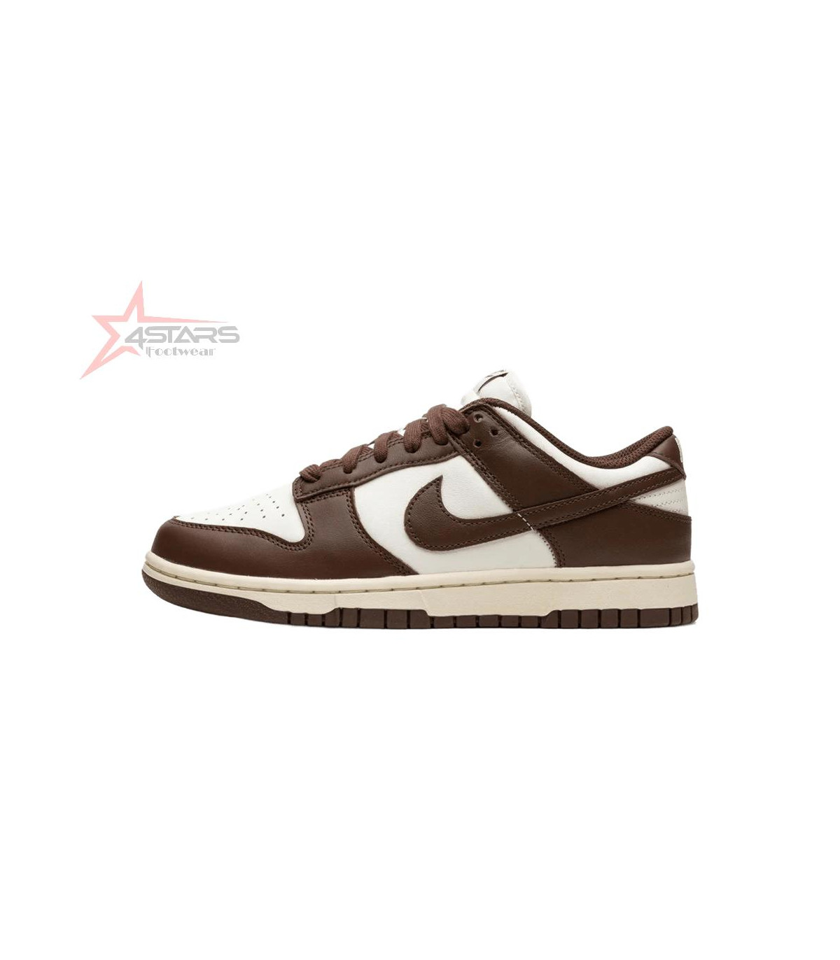 Indulge in rich, earthy tones with the Nike Dunk Low Cacao Wow. Crafted with a blend of soft leather and suede, this pair delivers a chocolate-inspired aesthetic that stands out effortlessly. Textured details on the tongue and panels enhance its unique look, while an EVA foam midsole keeps every step cushioned and comfortable. Finished with a durable rubber outsole for reliable traction all day.